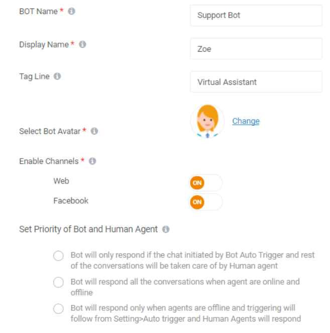 A chatbot widget template gives the flexibility to choose the preferred options that suit your business. So, you can set the priority for bot and agent to enable seamless conversational support in the true sense.