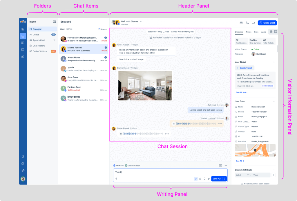 4. Chatting Panel: The primary interface for real-time communication with the visitor.