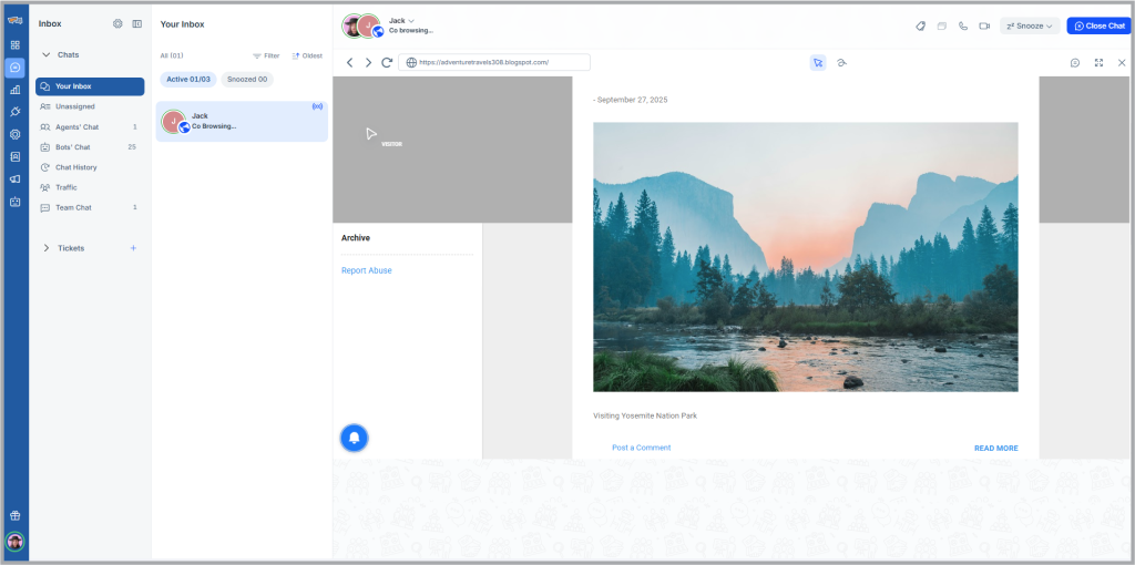 Thus co-browsing session successfully happens between the agent and the visitor.