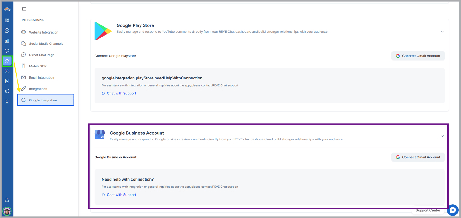 If businesses wants to reply to review comments by customers ( in the review section of google maps) through REVE Chat, they can follow the below procedure to connect their Google Business Account-