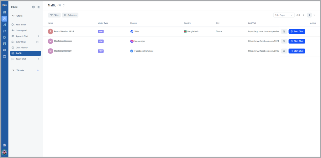 The “Traffic” folder is improved to allow users to proactively approach visitors. Various system & custom attributes will be available for the user to initiate a chat knowingly.