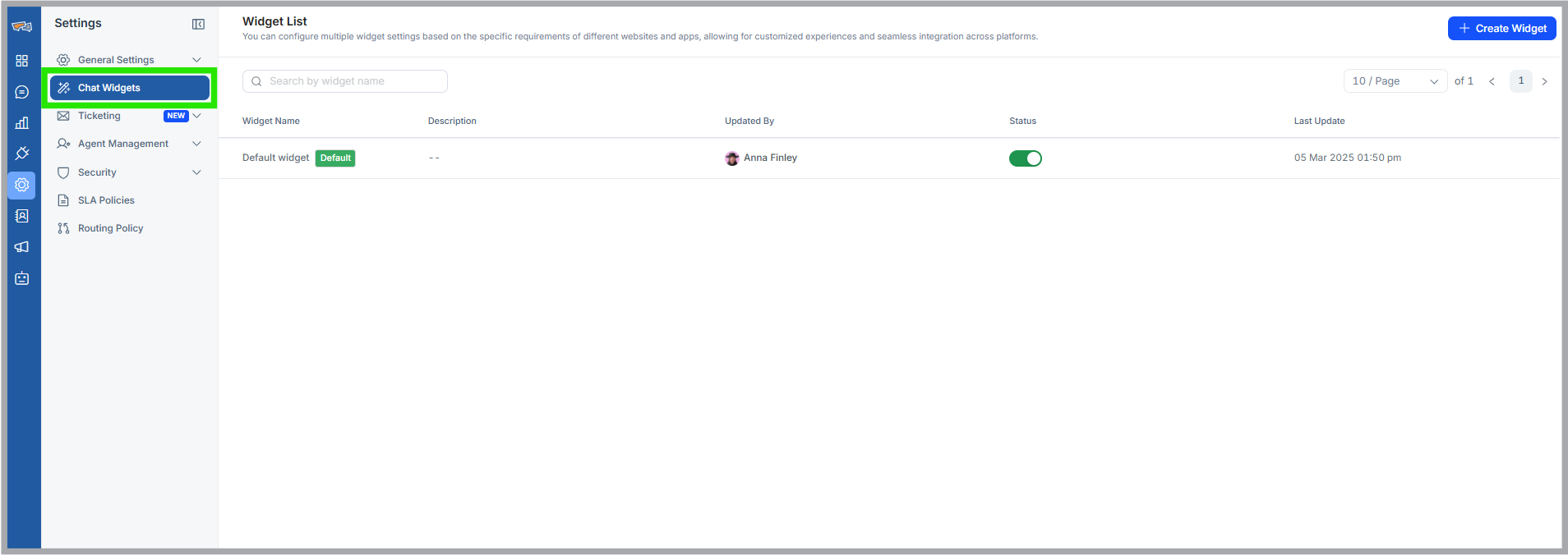 - Navigate to the chat widget section under settings.